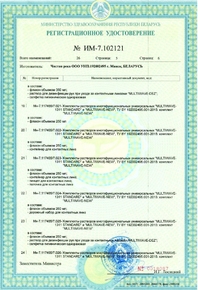 Регистрационное удостоверение РБ изделие медицинского назначения